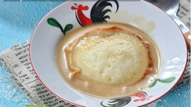 Apam bajuruh alias apam berkuah gula merah dengan santan kental.